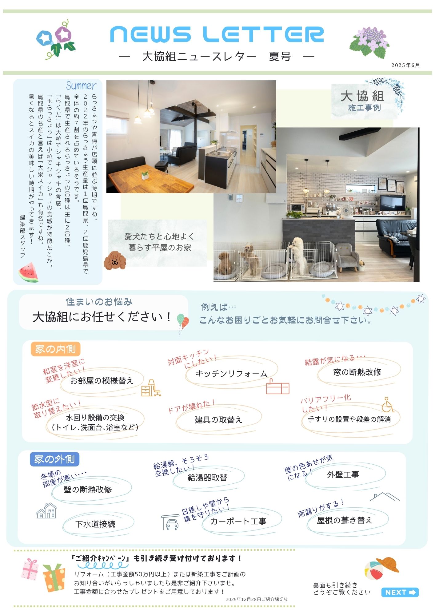 大協組建築部ニュースレター2025夏号 投稿日 2025年6月24日 daikyogumi@gmail.com いつも大協組ホームページをご覧頂きありがとうございます。 建築部より、ニュースレター夏号を発行しました。 是非、ご購読ください ↓ ↓