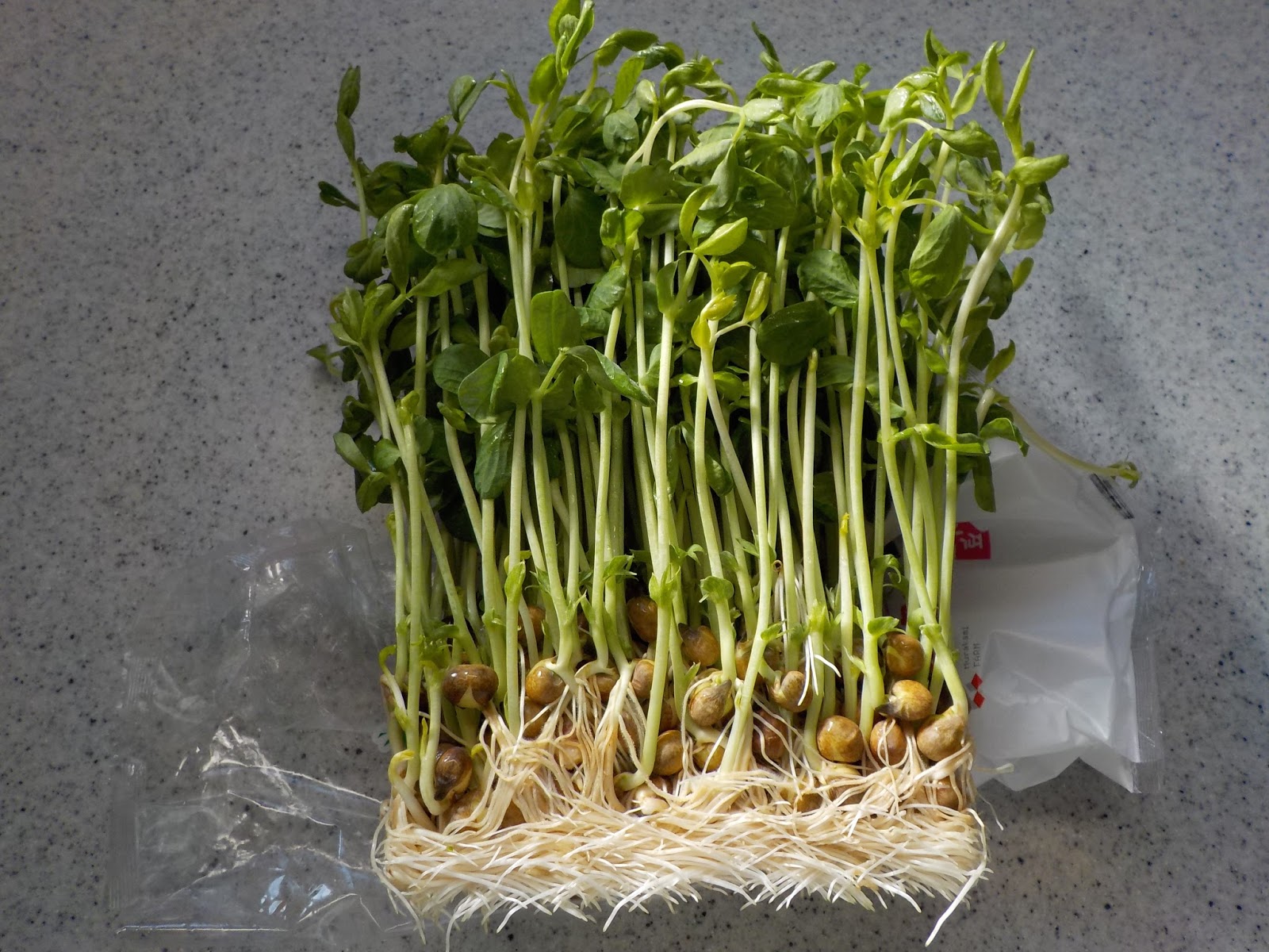 買った時より ひ弱な豆苗ですが 味に変わりはなく