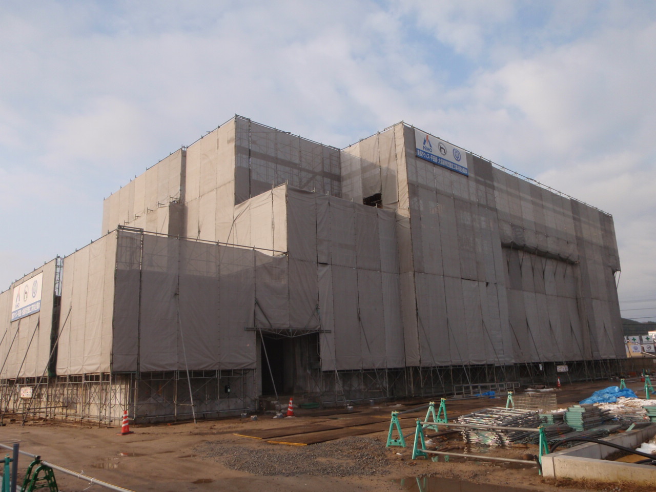 3月中旬には庁舎棟の3階が打ちあがる予定で、下階では仕上げ工事