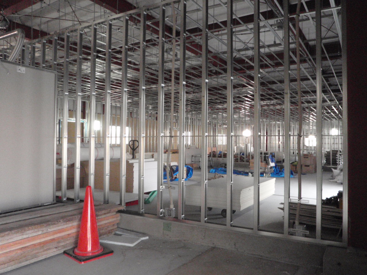 資材倉庫棟はLGS下地まで進んできています。ボードを張ってしまえば終わった