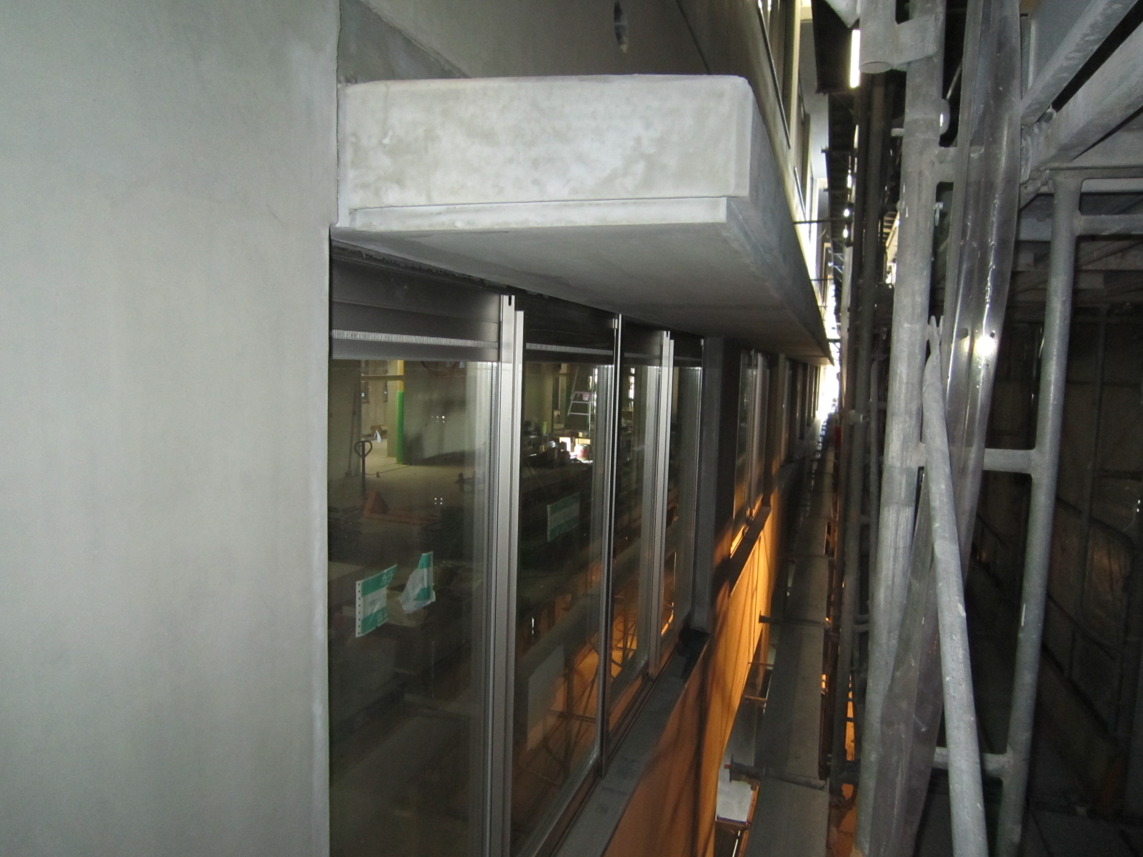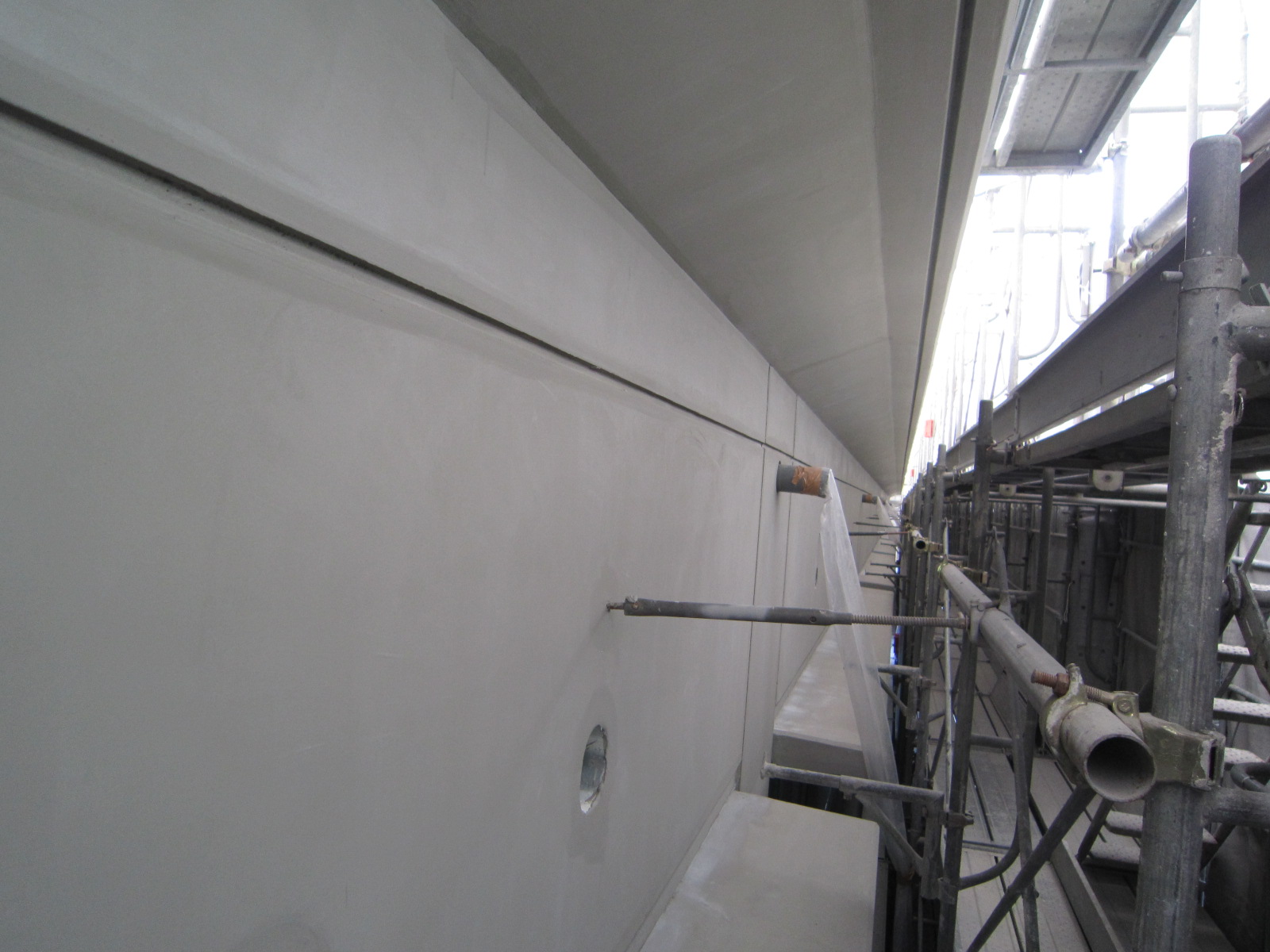 悪天候でも外装工事が出来る用、外部足場には雨養生のシートを張り雨対策を行い、主にシー