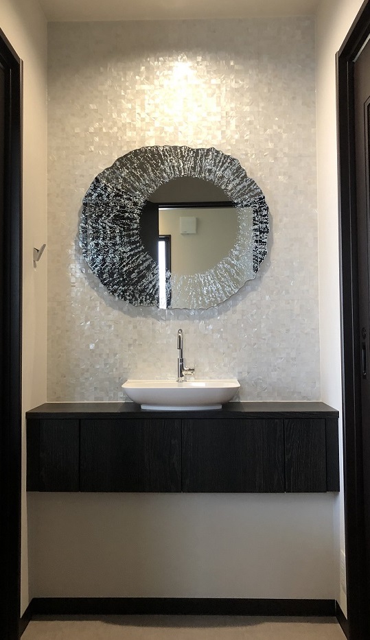手洗いスペースのミラーに取り入れました!