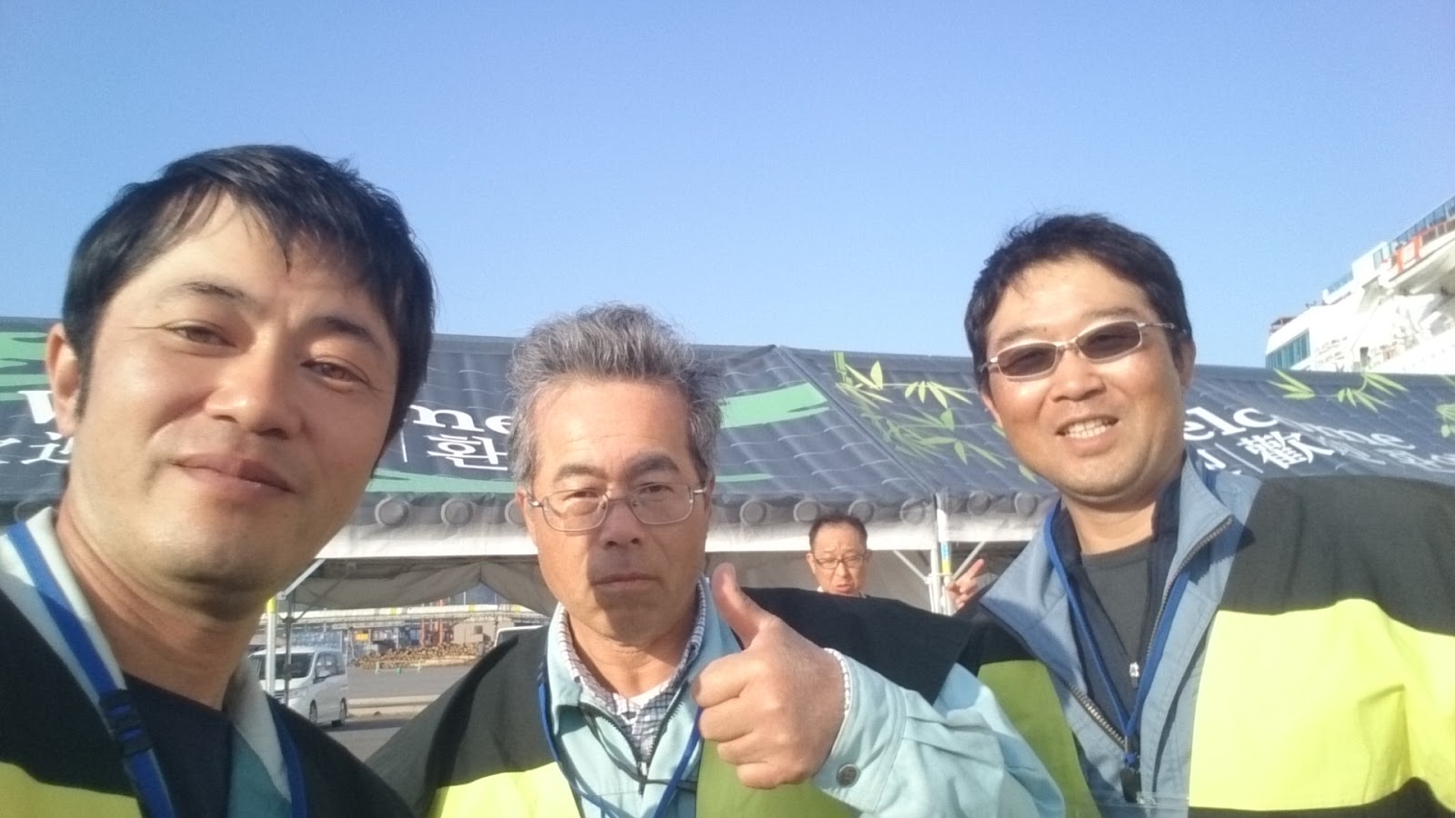 | 今回は、旗をもって お見送り・・・。 左は、所長。 これは、遊びではありません。 地域貢献です。 |