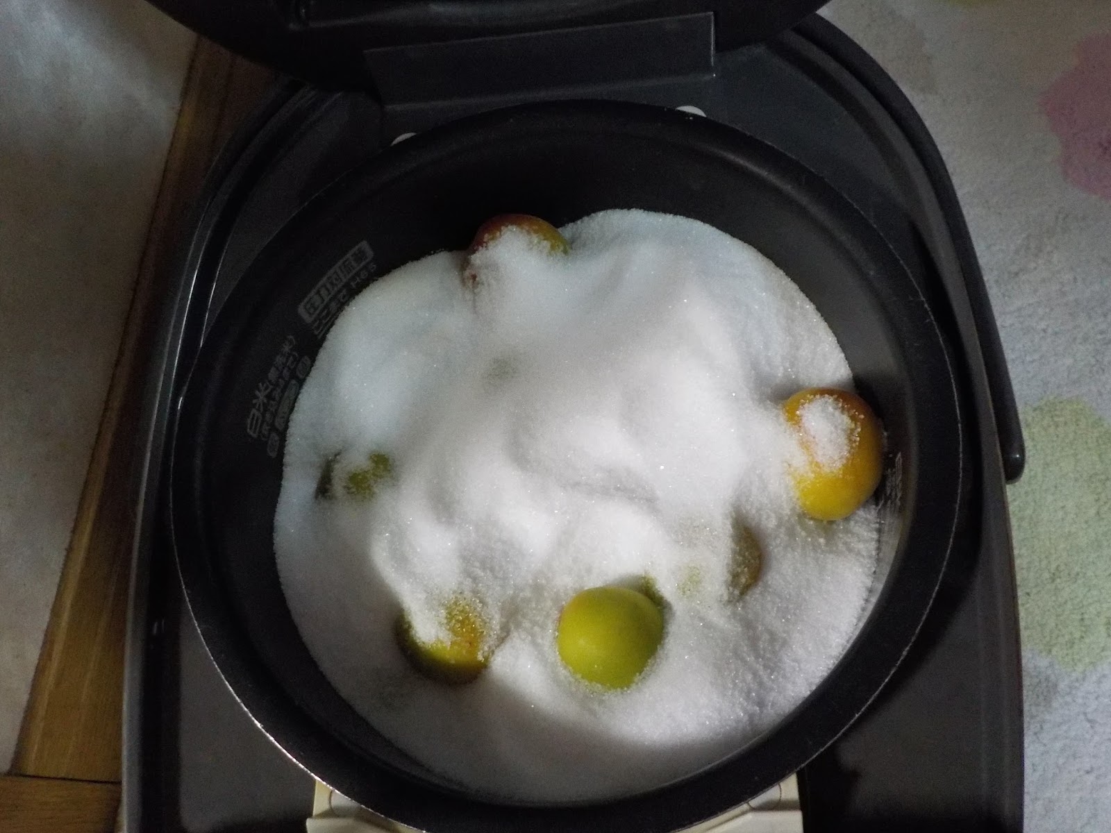 消毒した瓶の中に 梅、氷砂糖を交互に入れ2~3週間毎日 「美味しくなれ」と