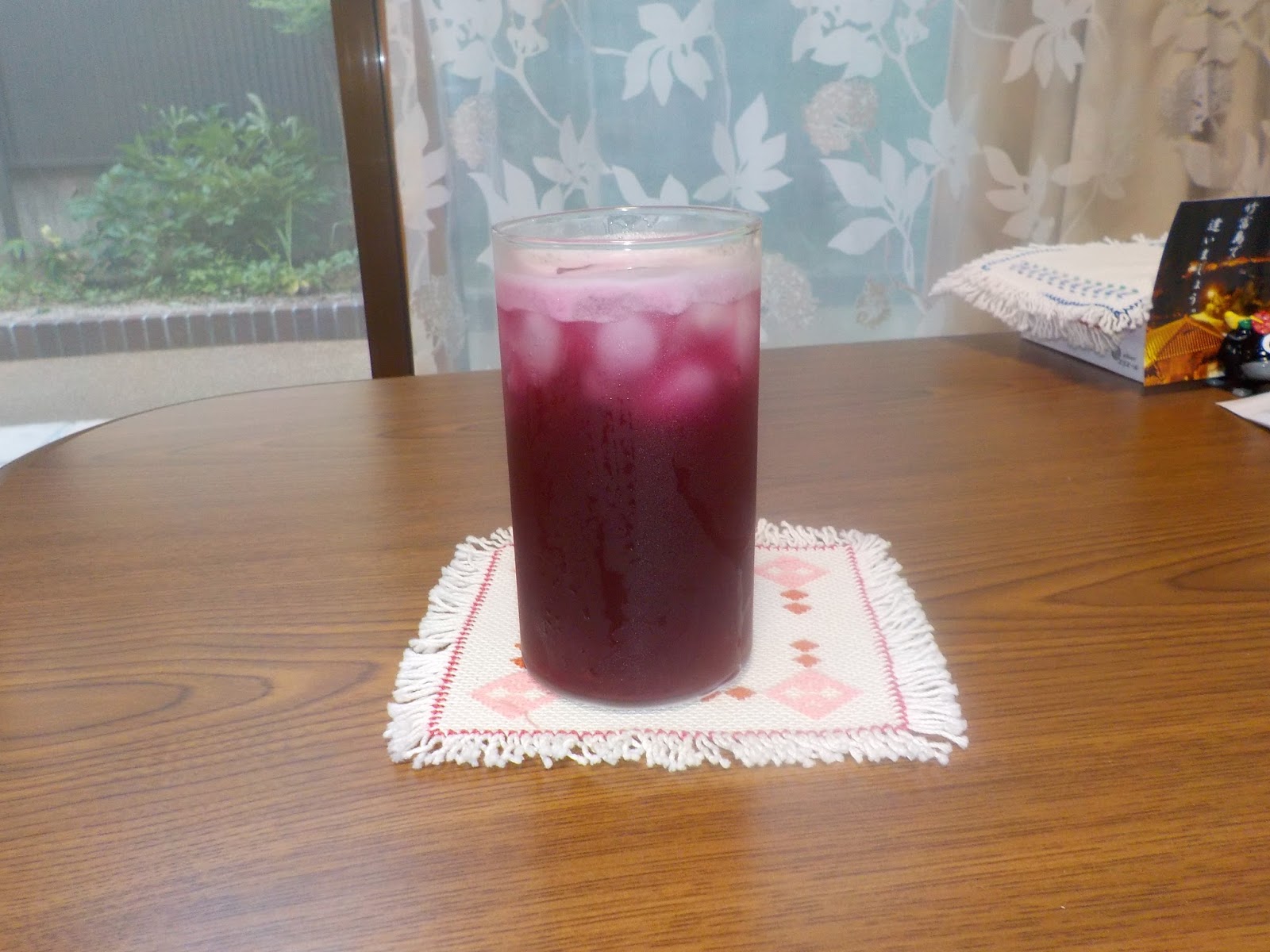 鮮やかなピンク色の紫蘇ジュースの出来あがりです。