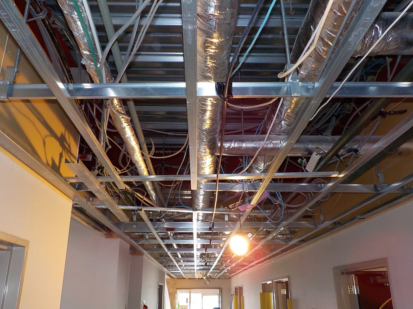 | 1階の廊下の天井ボードをはがし分かりにくいですが給湯管を新たに配管しております。 (右上の黒っぽい管で50Aが往管で25Aが還り管です) |