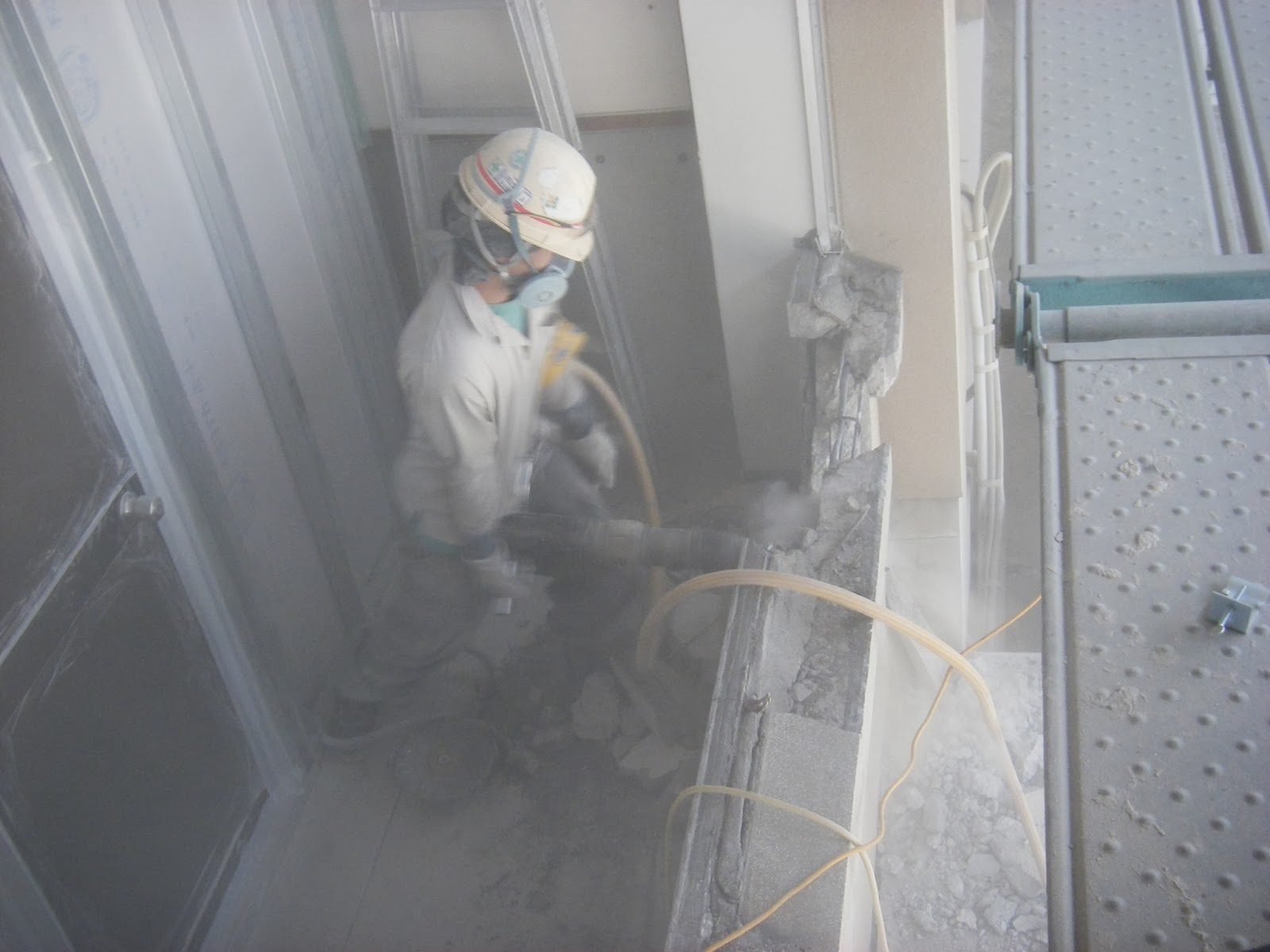 開口部のサッシや腰壁のコンクリートを解体しているところです。