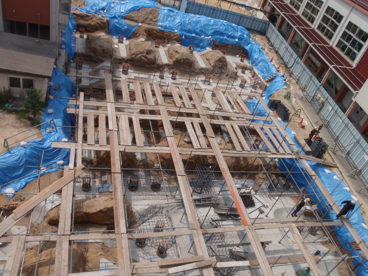| これは 9月1日現在の写真です。 周囲を建物に囲まれて狭い中 作業しています。 |