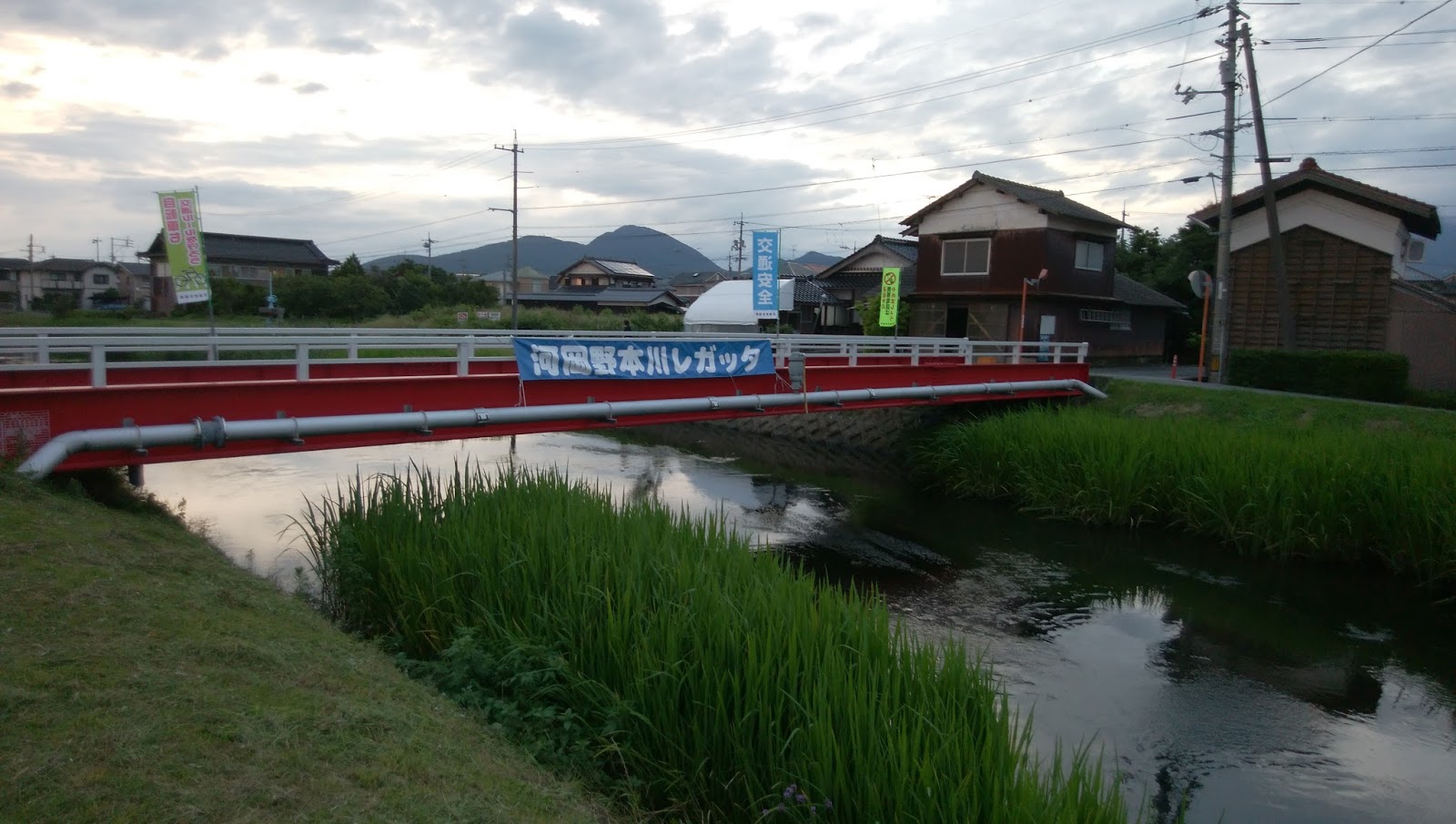 佐陀川)で子供達や親子で参加がする野本川レガッタと夕方からは