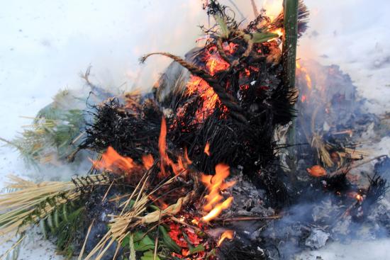 | 昨年のお守りや注連縄に火を付けて