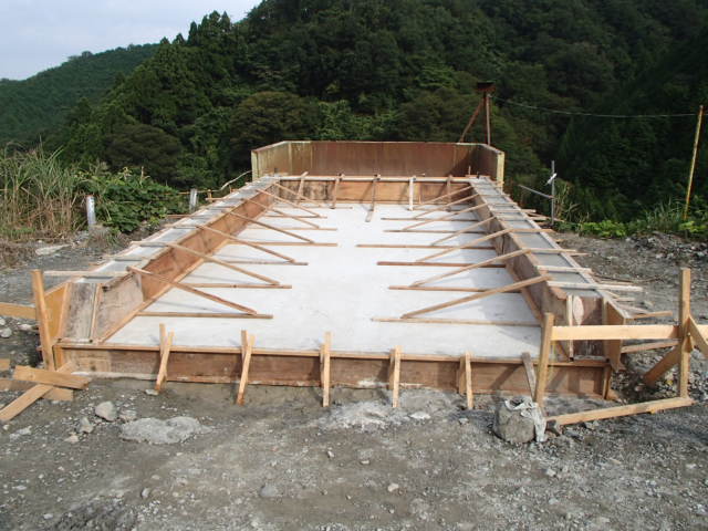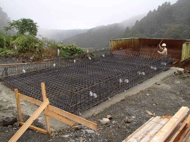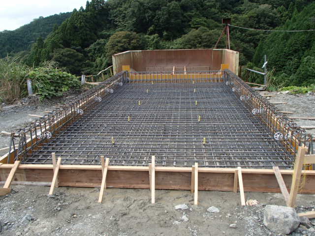 えるらしいです。車止めの版厚は30cm~50cm、鉄筋コンクリート重量は約43tになります。