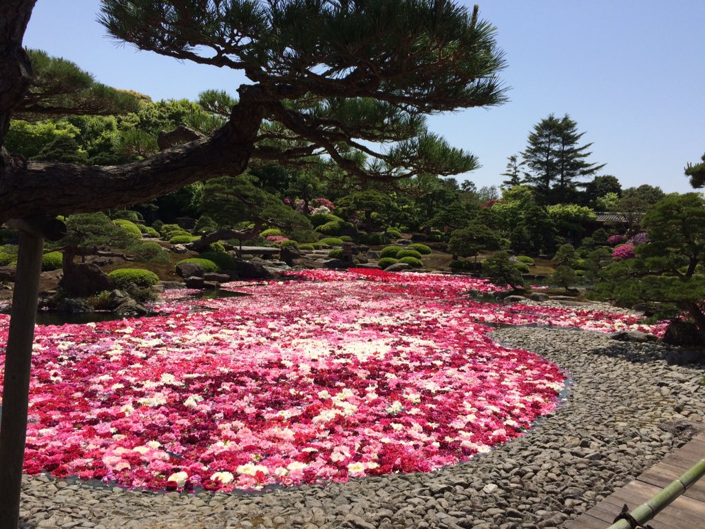 この写真の由志園の池にピッタリですね!