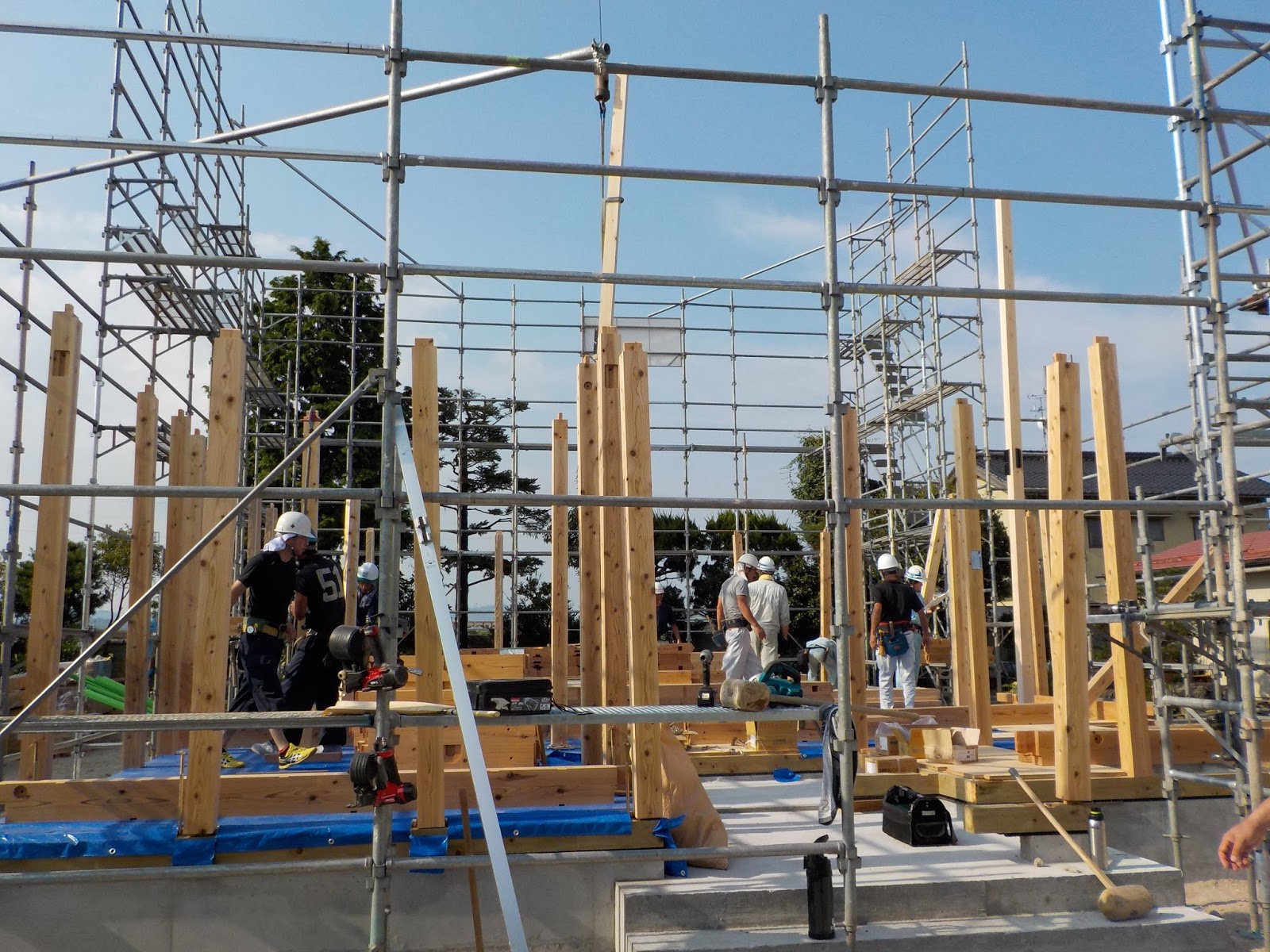 2階、ロフト、小屋裏・・・・と 上で10人もの大工さんが