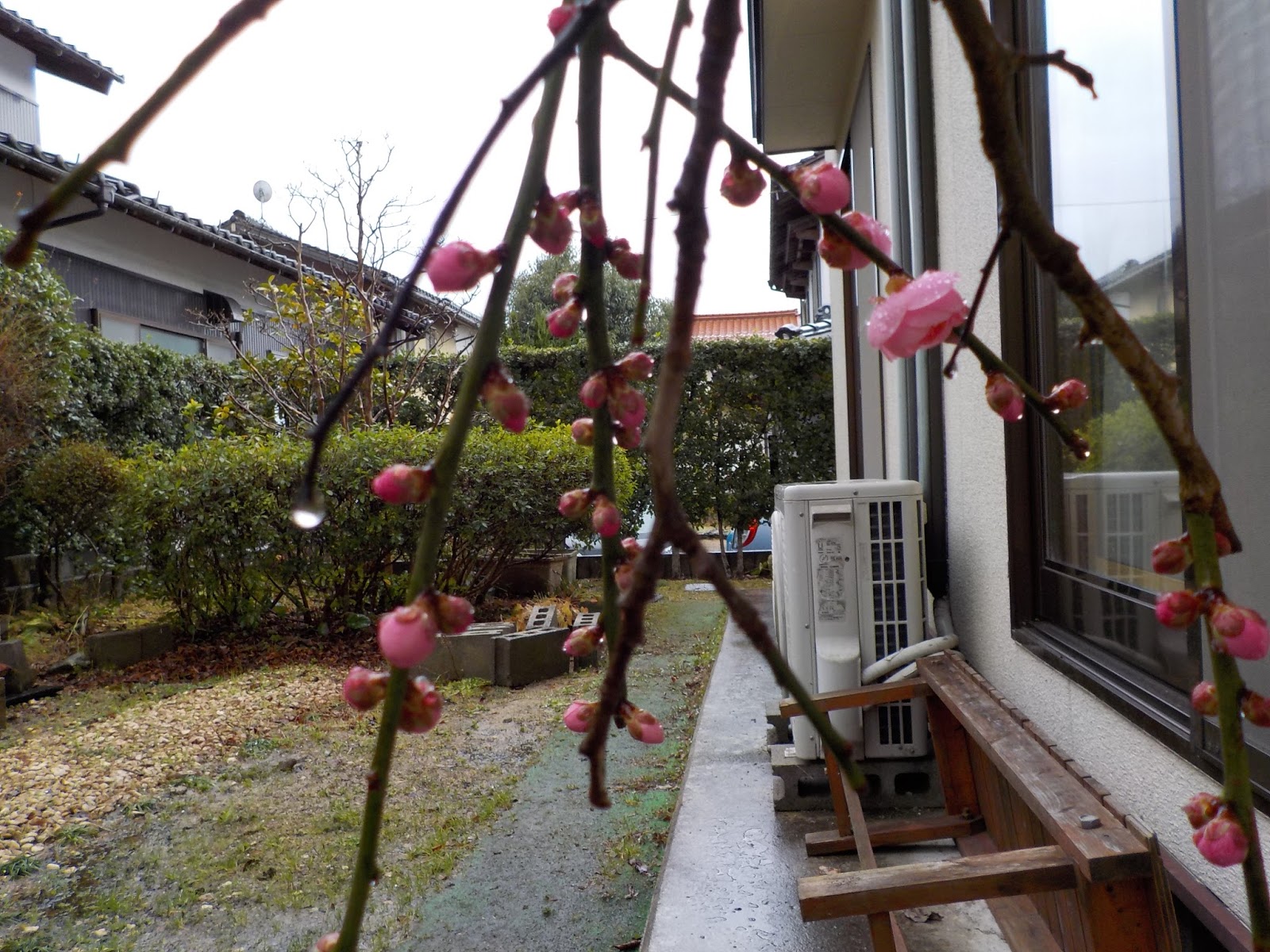 私の声が聞こえたのか 蕾を残してもらった枝垂れ梅は咲き始めています