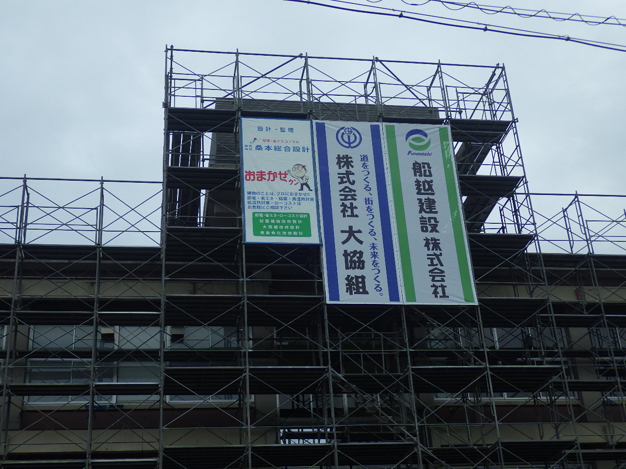 | 只今、外部足場組立中!!! |
