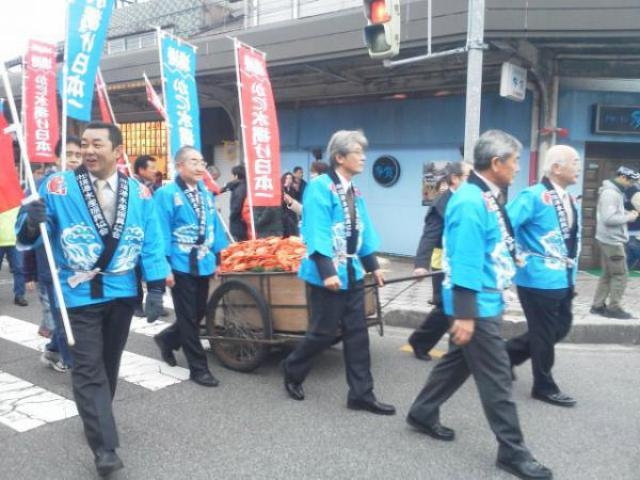 当日は境港市内3か所でカニ汁の振る舞いや駅前からのパレードに参加した人