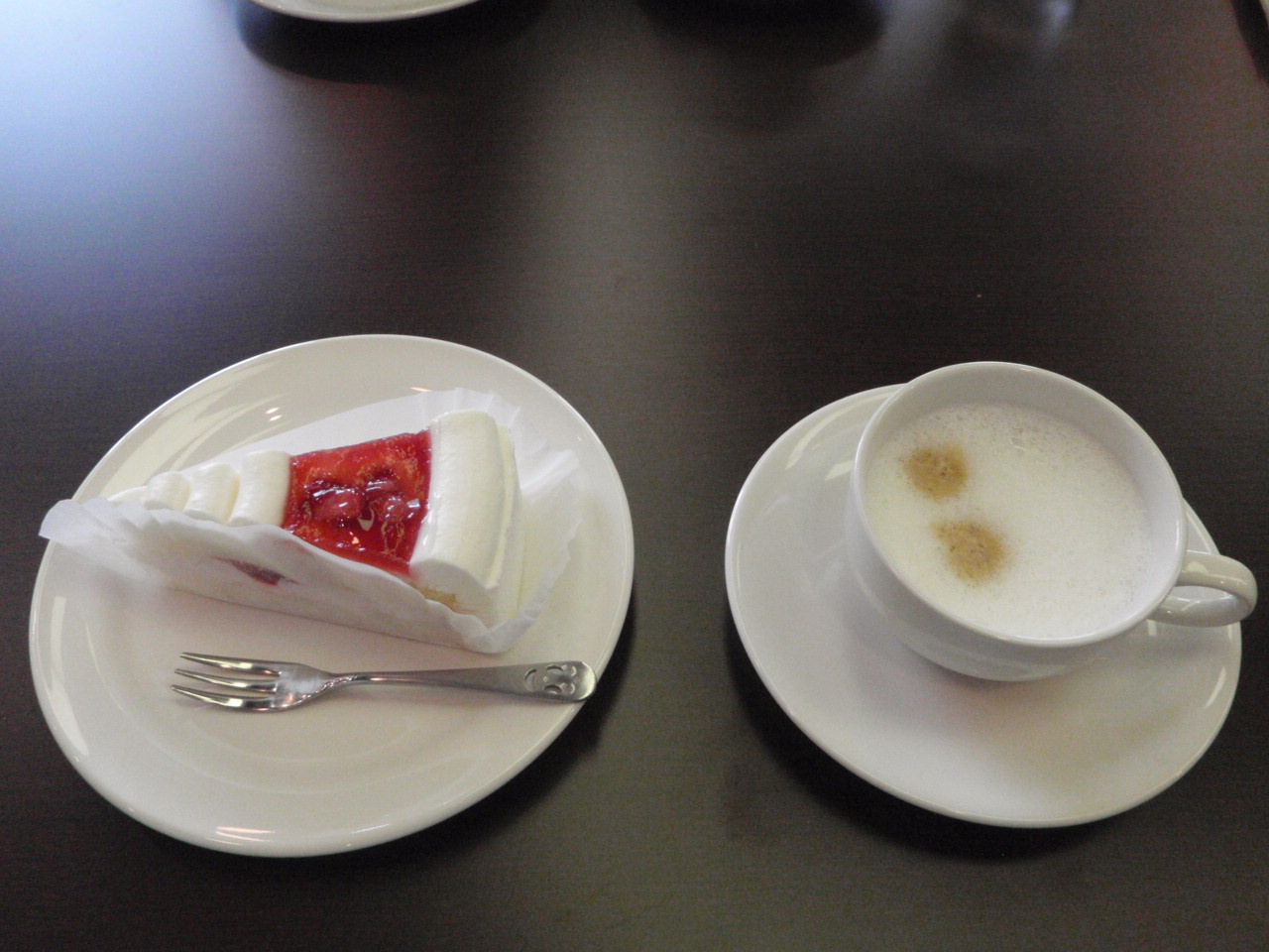 竹田係長はイチゴケーキとカフェラテをいただきました。