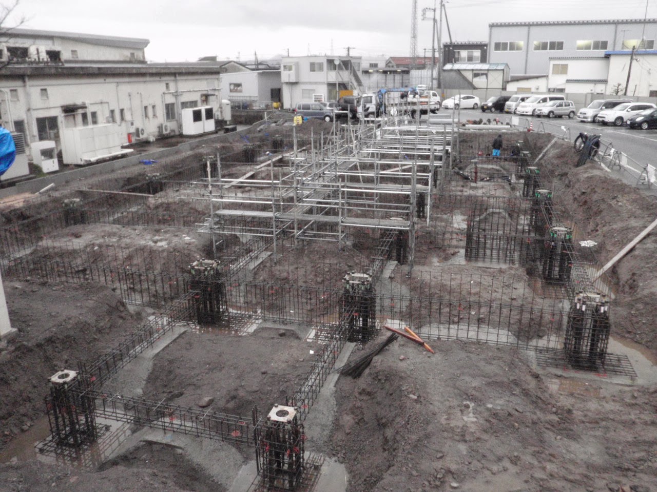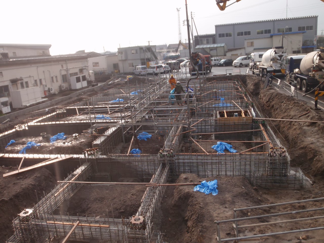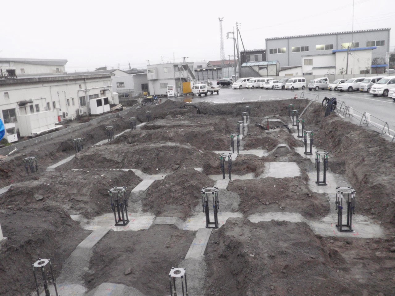 年末に向けて。 投稿日 2013年12月28日 daikyogumi@gmail.com 建築部 竹田です。 地鎮祭も終わり 今月初旬より <株式会社大協組本社改築工事> が着工しました。 写真は、着工前です。 では、現場の状況報告です。 まず、初めに建物を支える地盤の改良を ソイルセメント工法でおこないます。 全体だとこんな感じです・・・。 2台の重機で掘削を行います。 大量の土が出るので全て場外へ搬出をします。 大協組のダンプの運転手さんの協力に 感謝 感謝!!! ベースパック据付 基礎と鉄骨をつなぐ大事なものです。 基礎の配筋中 綺麗に鉄筋が組まれています。 年末の大仕事 基礎のコンクリート打設です。 順調に 無事故で今年を終えることが出来ました。 株式会社大協組本社改築工事 の現場報告でした。