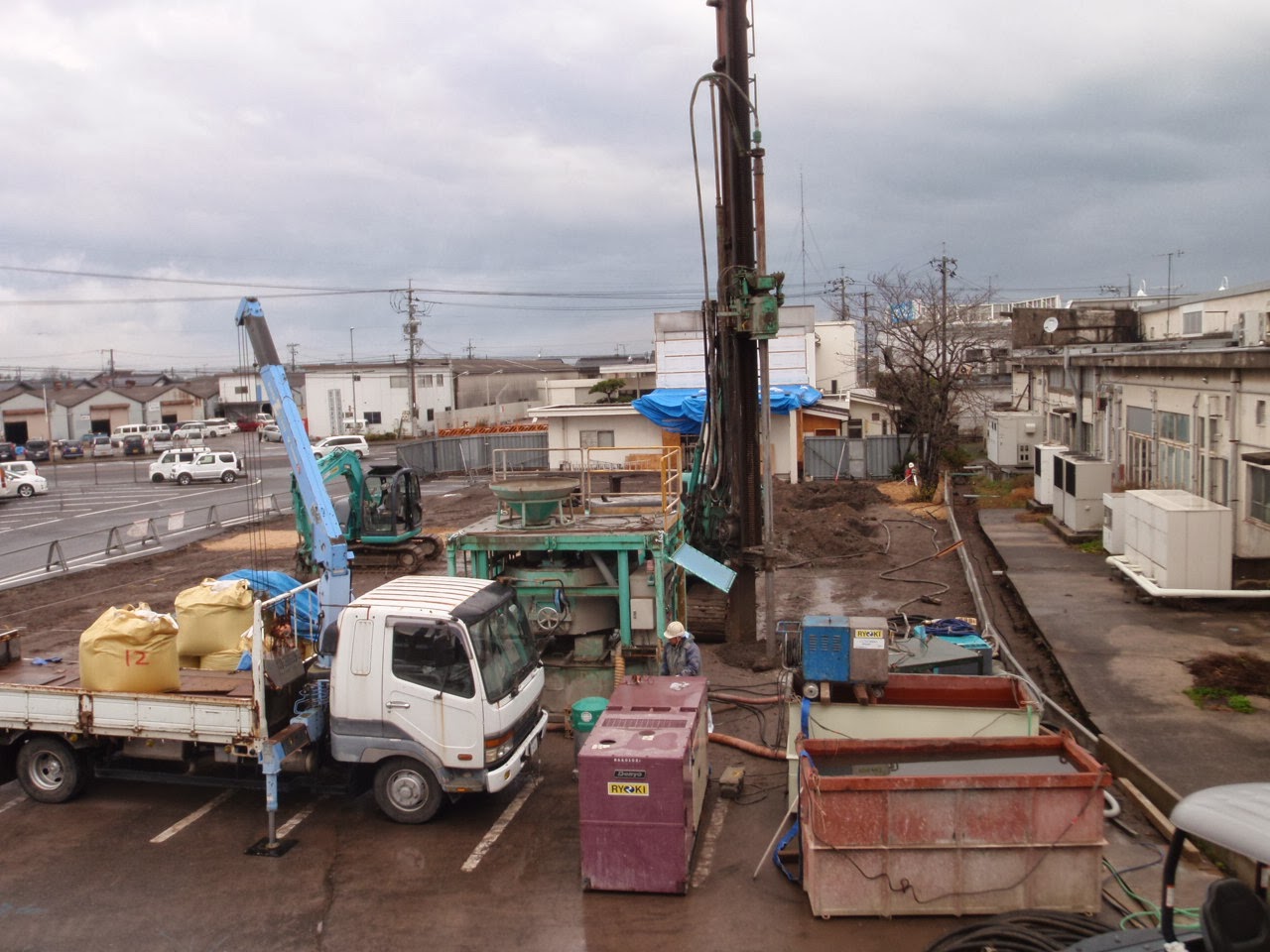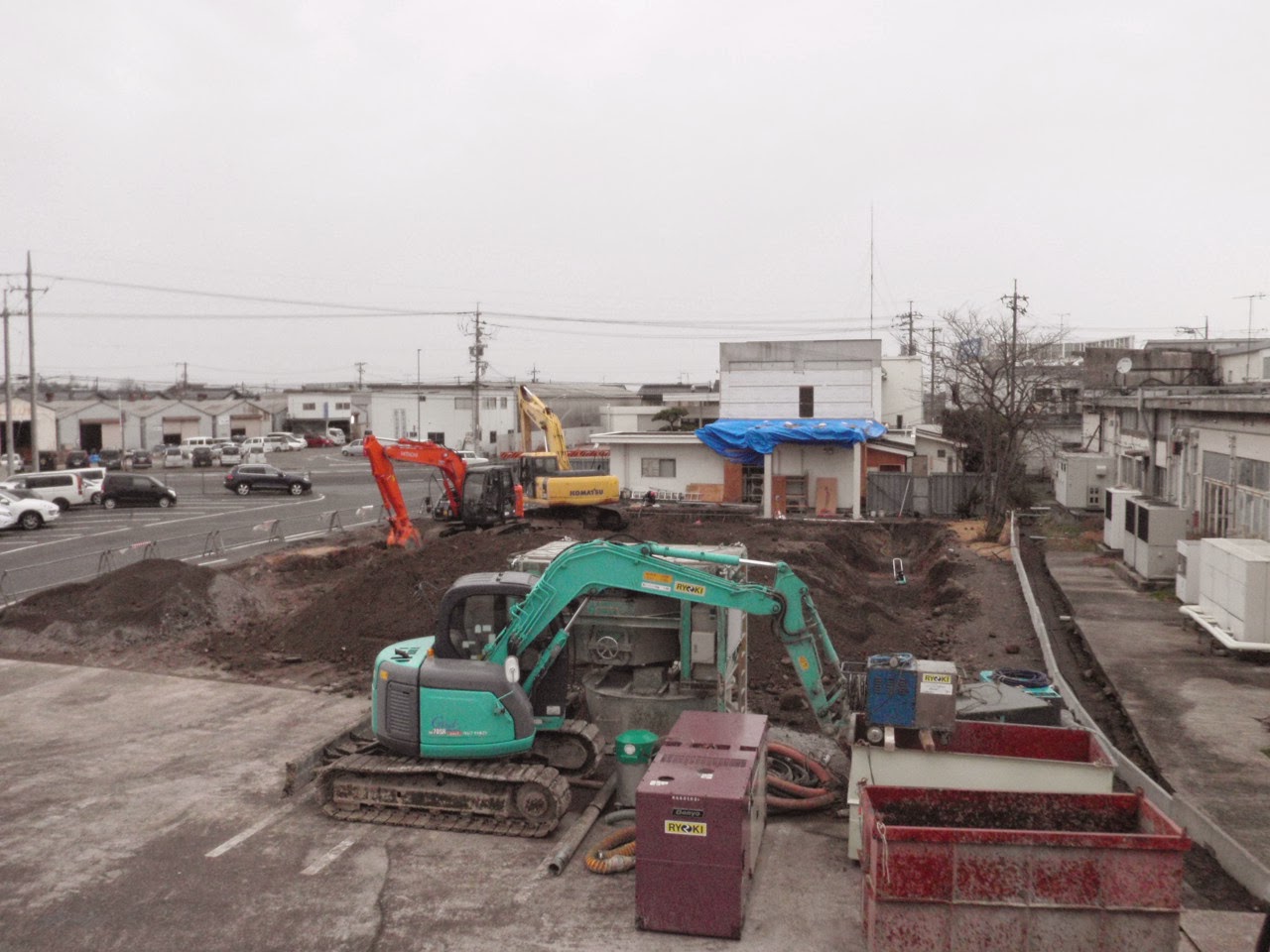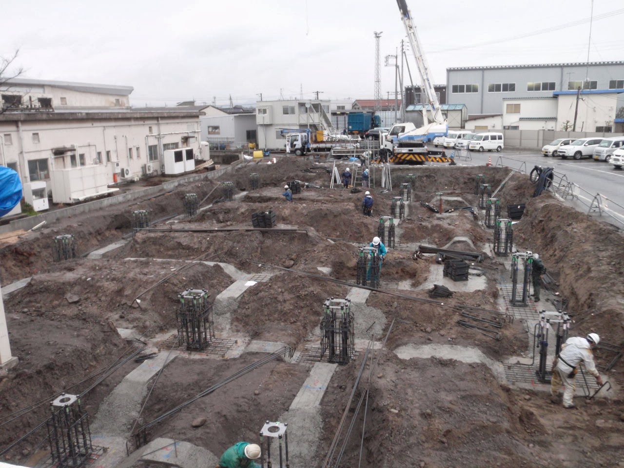 年末に向けて。 投稿日 2013年12月28日 daikyogumi@gmail.com 建築部 竹田です。 地鎮祭も終わり 今月初旬より <株式会社大協組本社改築工事> が着工しました。 写真は、着工前です。 では、現場の状況報告です。 まず、初めに建物を支える地盤の改良を ソイルセメント工法でおこないます。 全体だとこんな感じです・・・。 2台の重機で掘削を行います。 大量の土が出るので全て場外へ搬出をします。 大協組のダンプの運転手さんの協力に 感謝 感謝!!! ベースパック据付 基礎と鉄骨をつなぐ大事なものです。 基礎の配筋中 綺麗に鉄筋が組まれています。 年末の大仕事 基礎のコンクリート打設です。 順調に 無事故で今年を終えることが出来ました。 株式会社大協組本社改築工事 の現場報告でした。