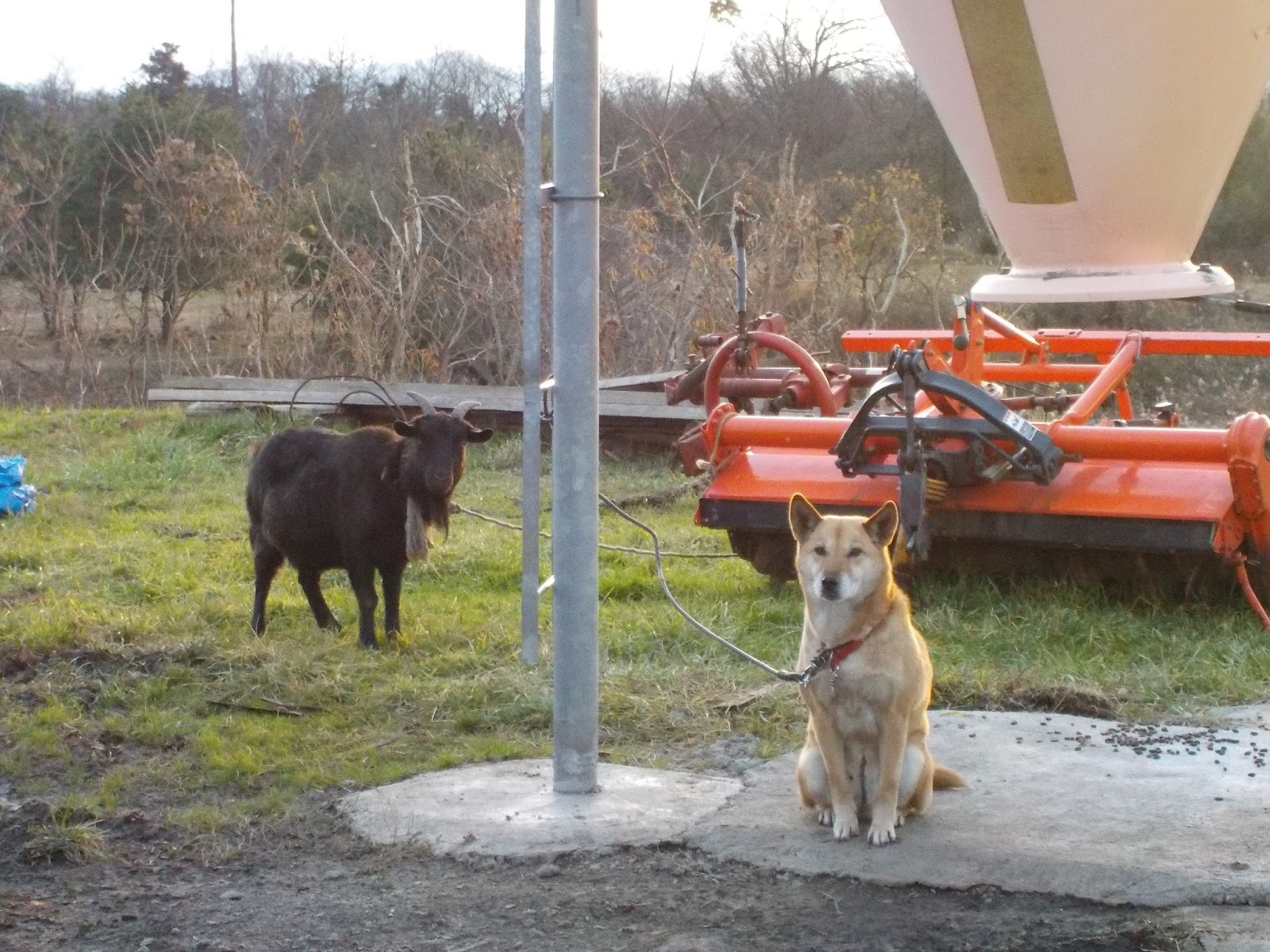 工事進捗状況を見守る ヤギのうめ 番犬ちっく