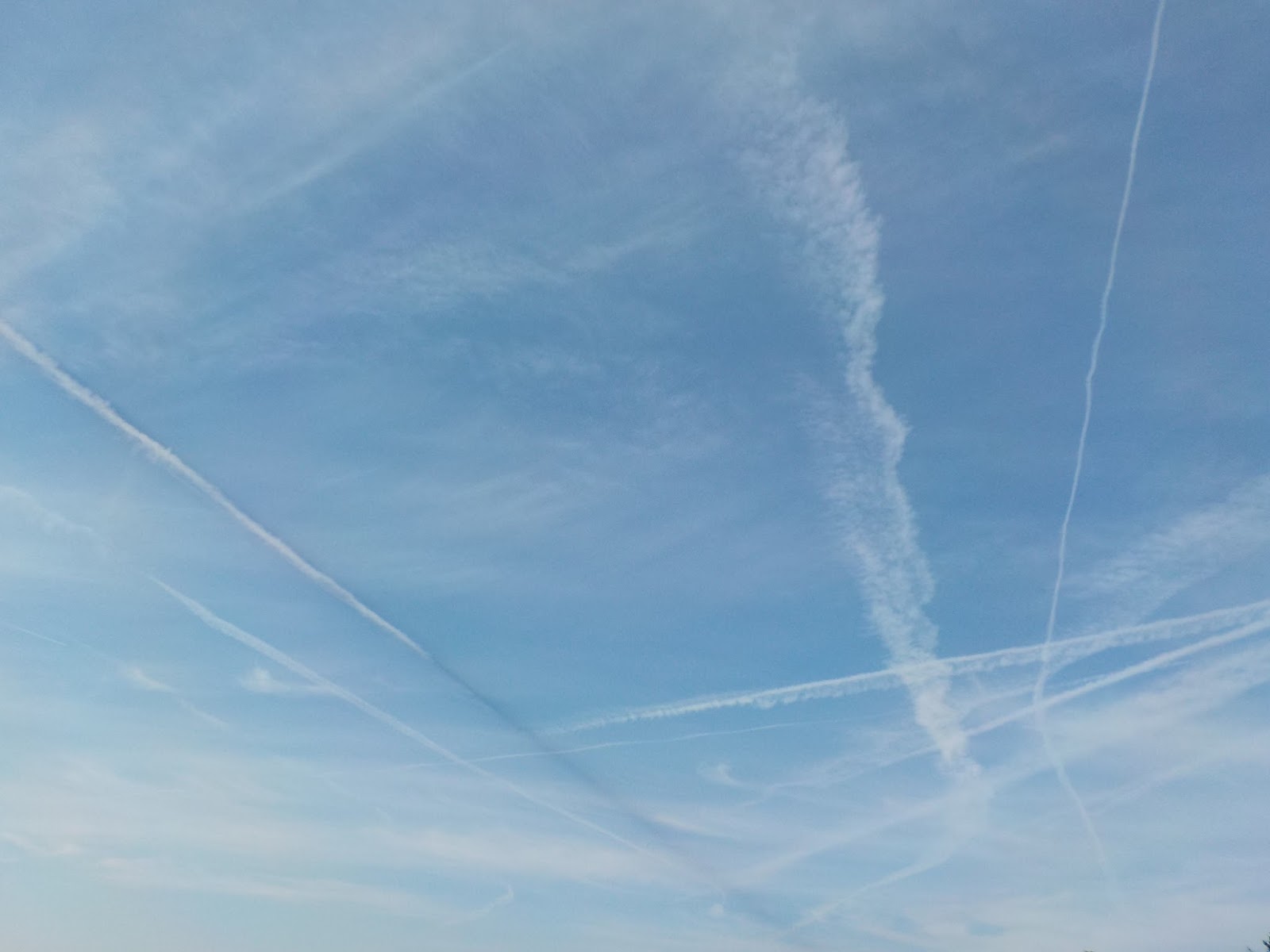 今日は何月?と思うほどの青空と飛行機雲・・・