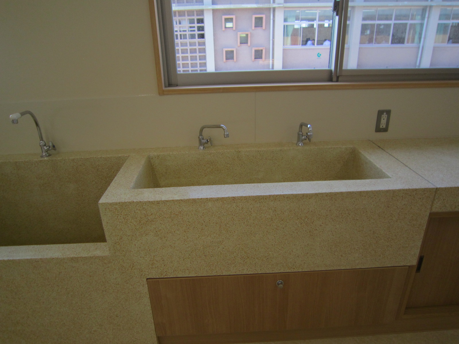 特に3階の科学実験室等には、人研ぎ仕上げの流し台があり、職人さんの苦労が伺えます。