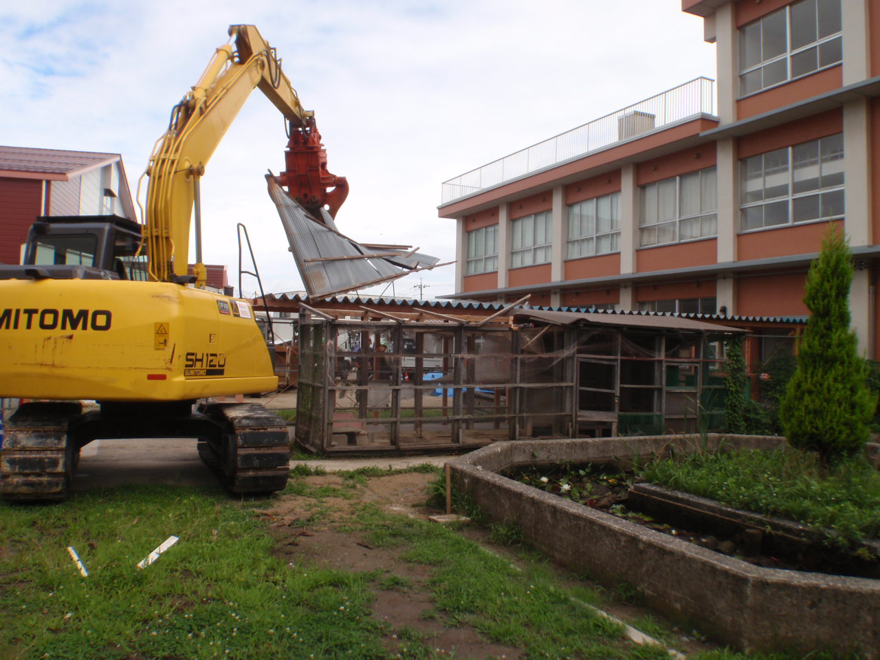 | 重機で一気に解体が始まりました。 安全第一で作業中! |