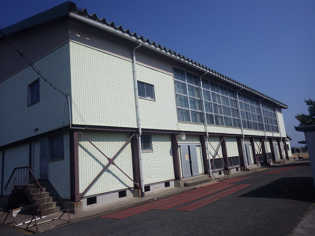 | グランド側の北面です。 建物が長いので 全体が写せません。 |