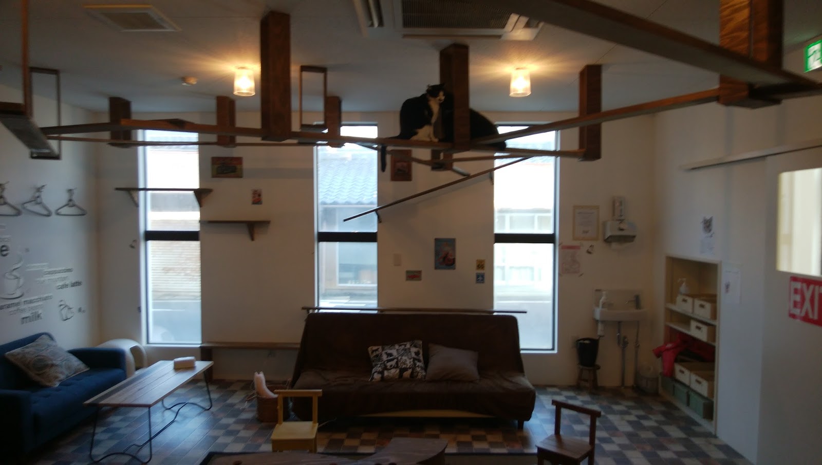 中には開店10分後でしたが既に4人の女性客が楽しそうに猫と遊んでいました。