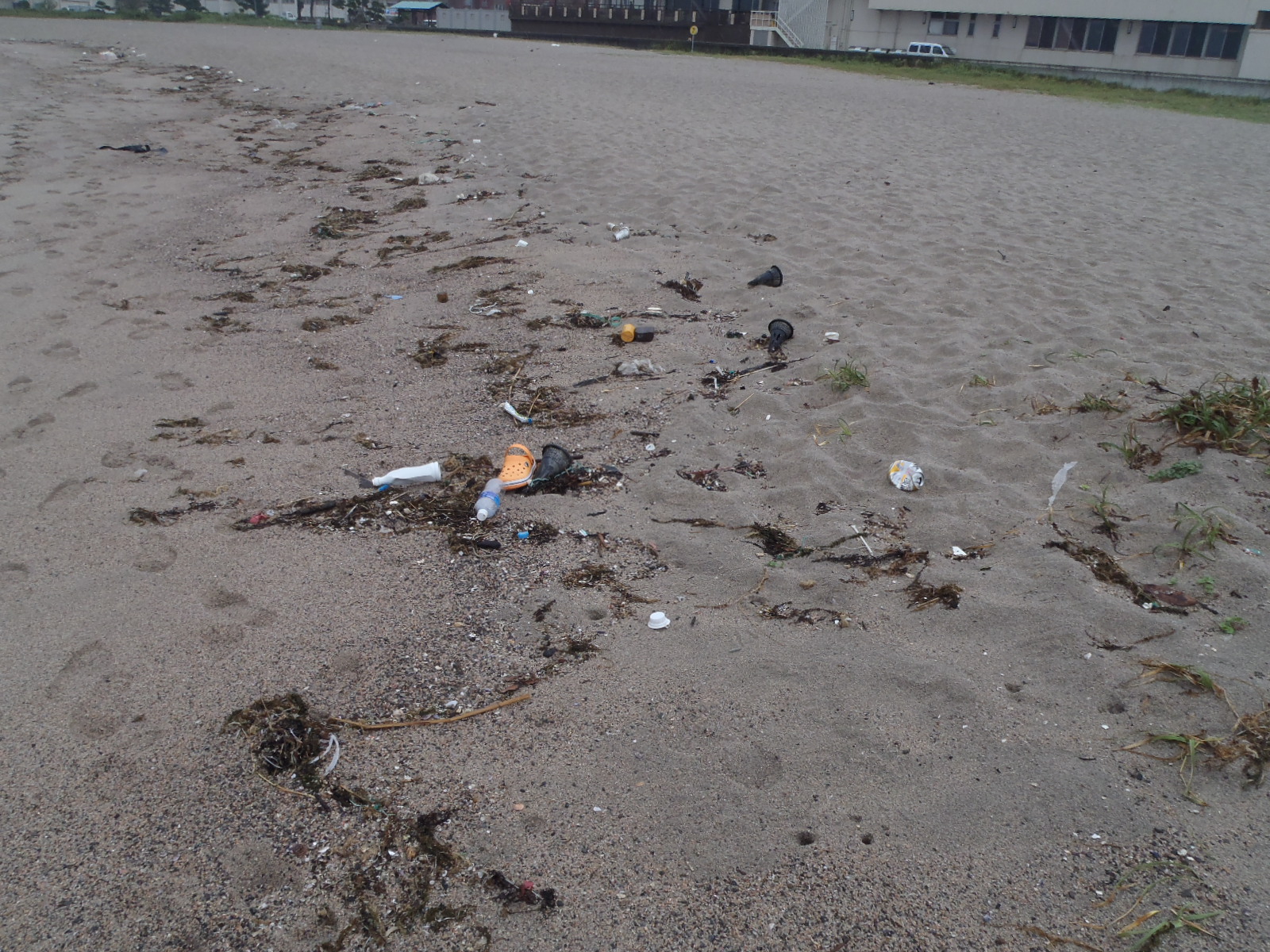 | 波打ち際にゴミが・・・ |