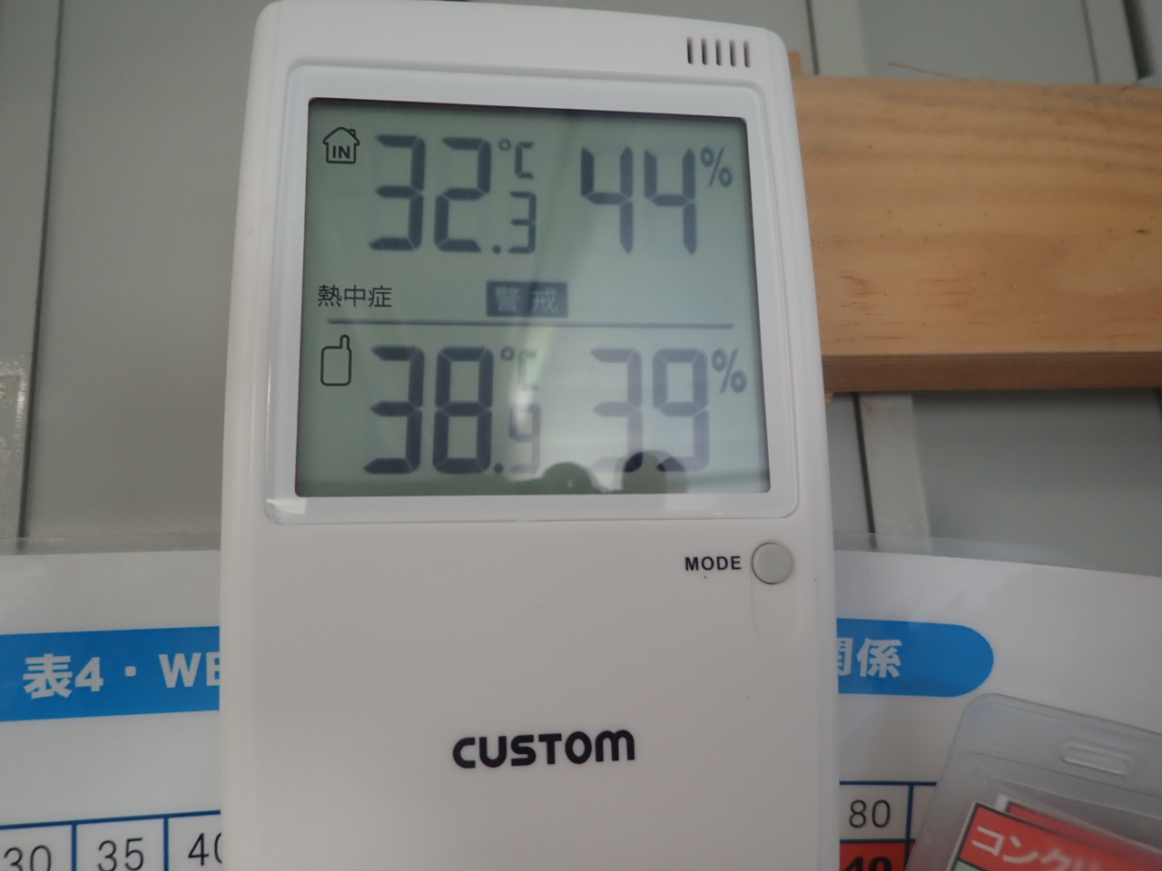 温度計は、屋外 38.9℃