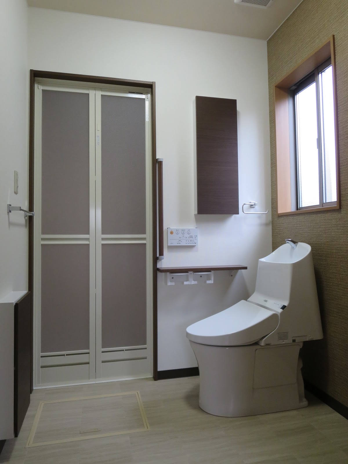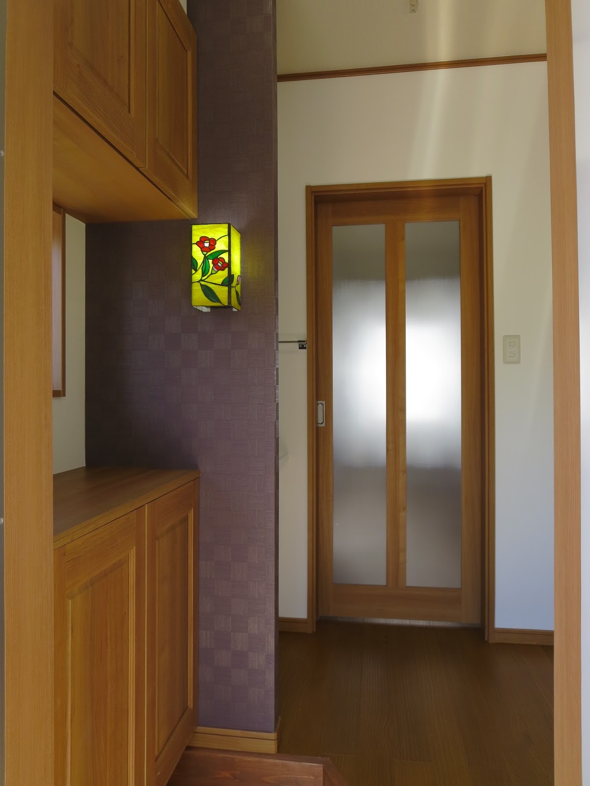 (実は、この壁の向こうには 収納たっぷりの洗面化粧台があるんです)