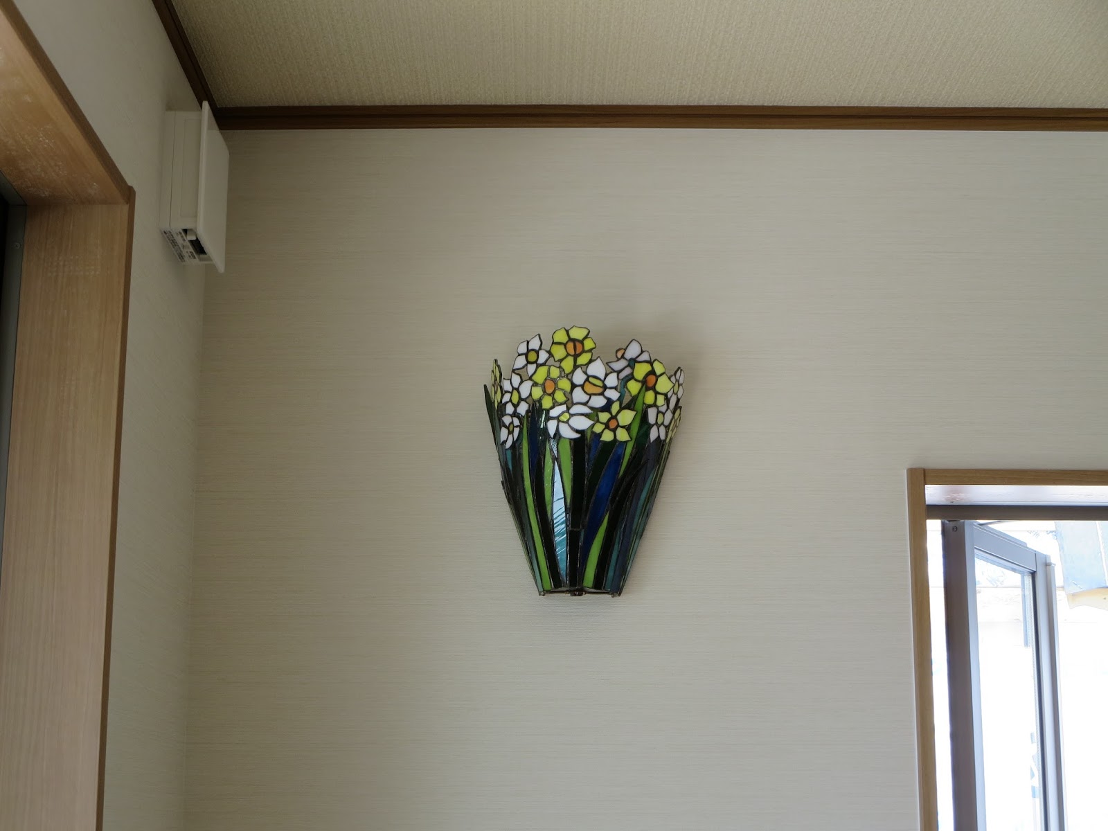 ライトをつけると黄色に赤い椿が浮かび上がり