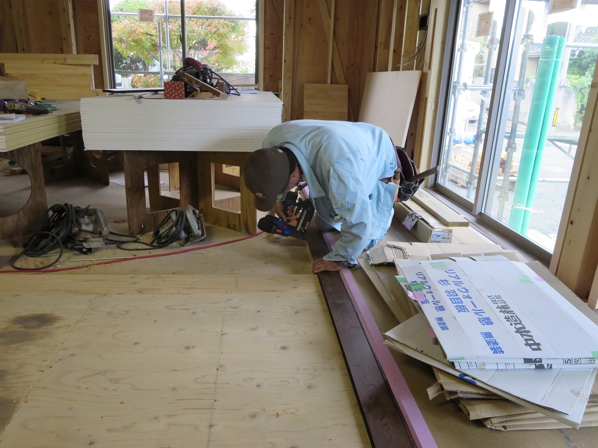 フロア貼りのようすでございます↑↑
