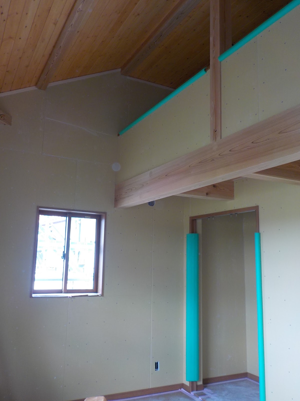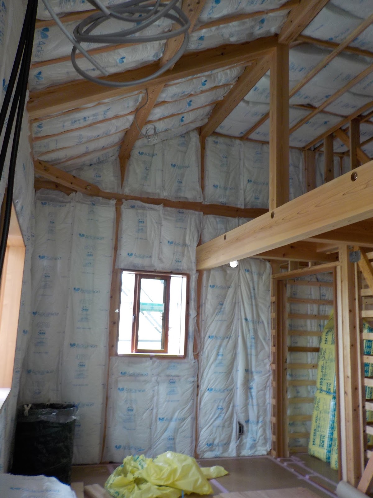 (あまりに断熱材が厚いので 大工さんフゥ~フゥ~作業していました)