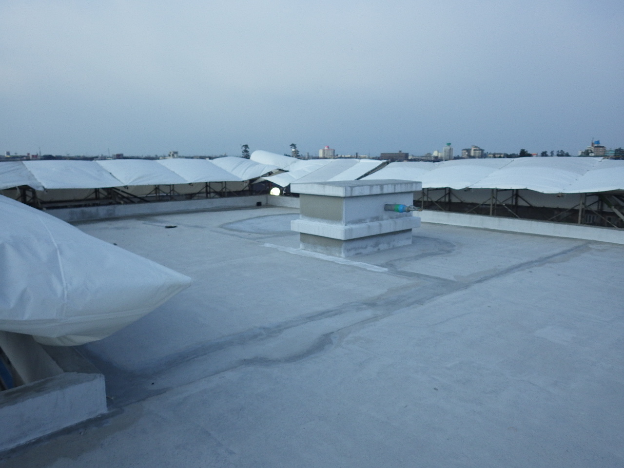| 屋上です。 天候が悪く雨養生がないと進みません