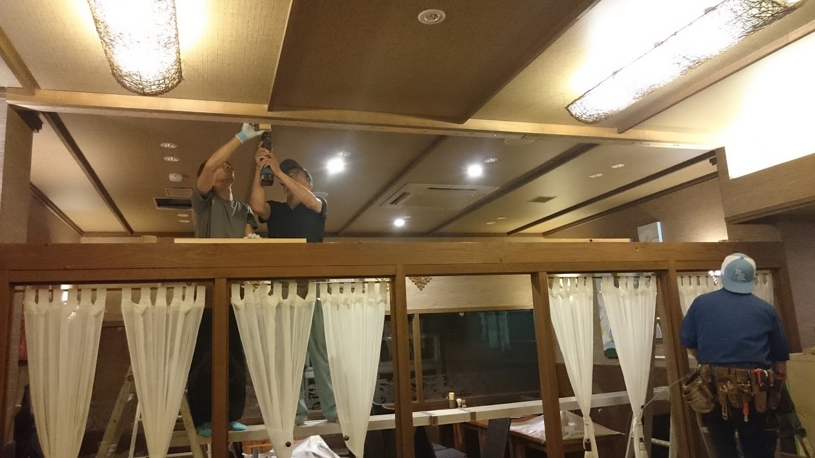 | 閉店後からオープンまでの工事 大工さん 電気屋さん 真夜中の集合ありがとうございます。 |