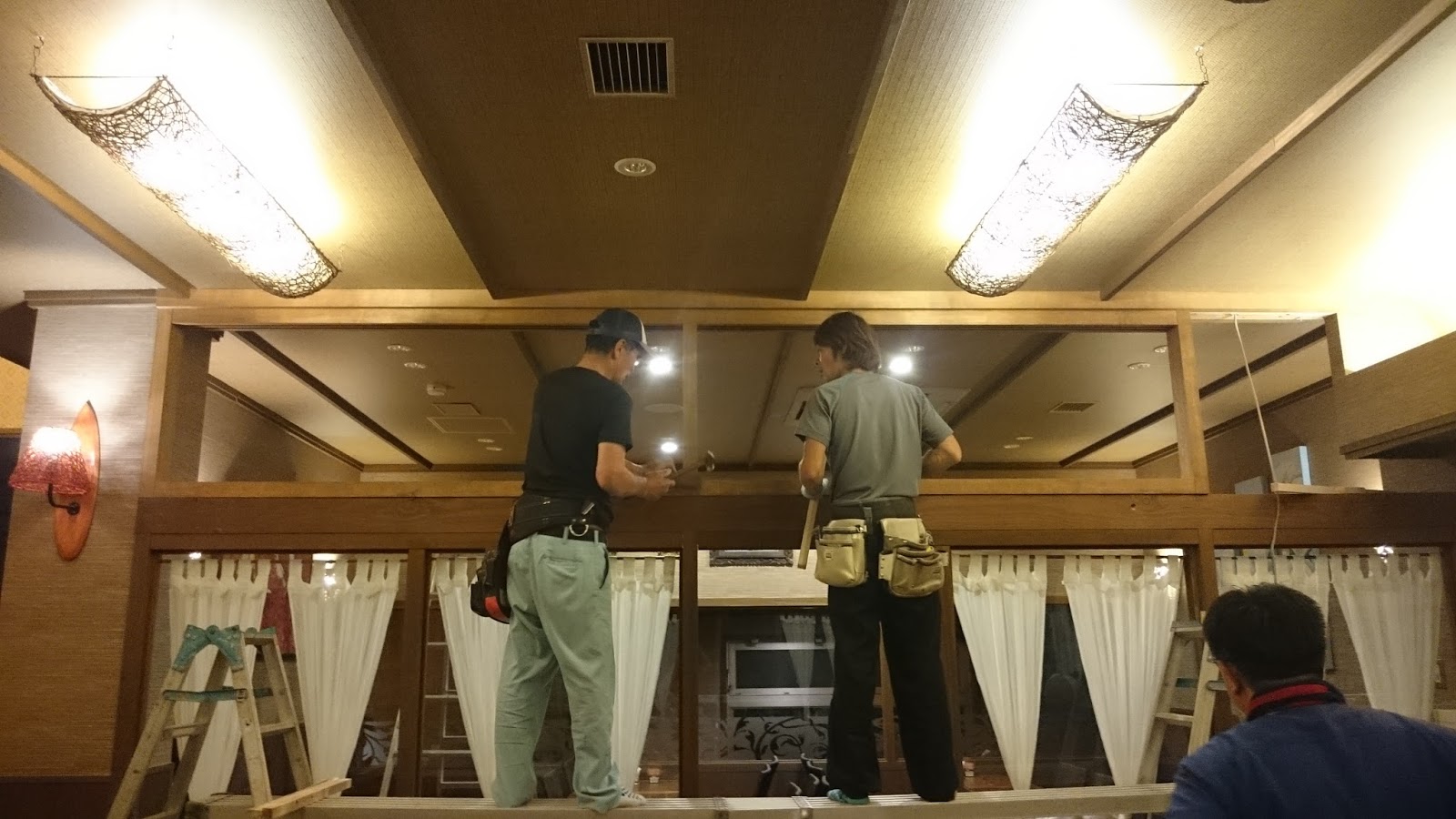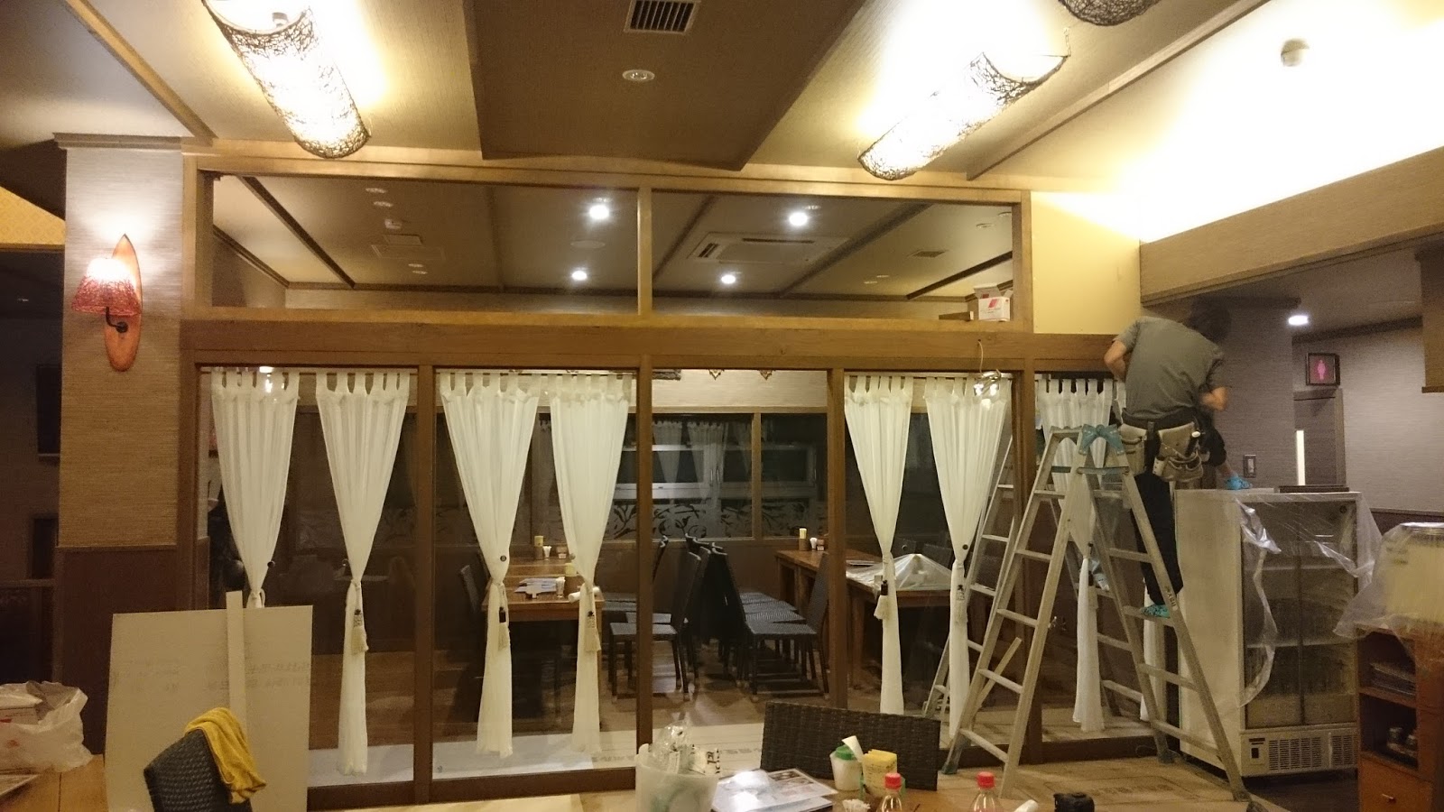 | 何をしたかと言いますと・・・。 レストランに個室があるんですが、 入口を自動ドアに取り替えと 上部に建具を取付る内容となっています。 |