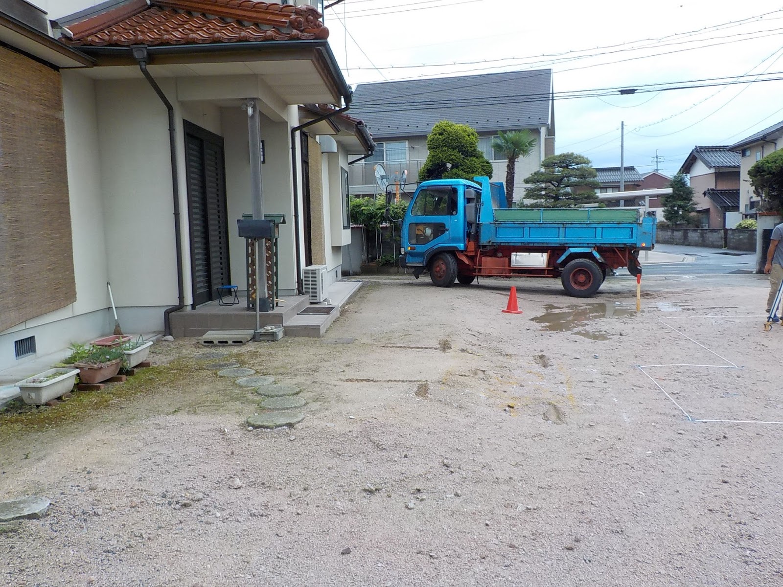 | 砕石敷き後、ベースコンクリート打設 |