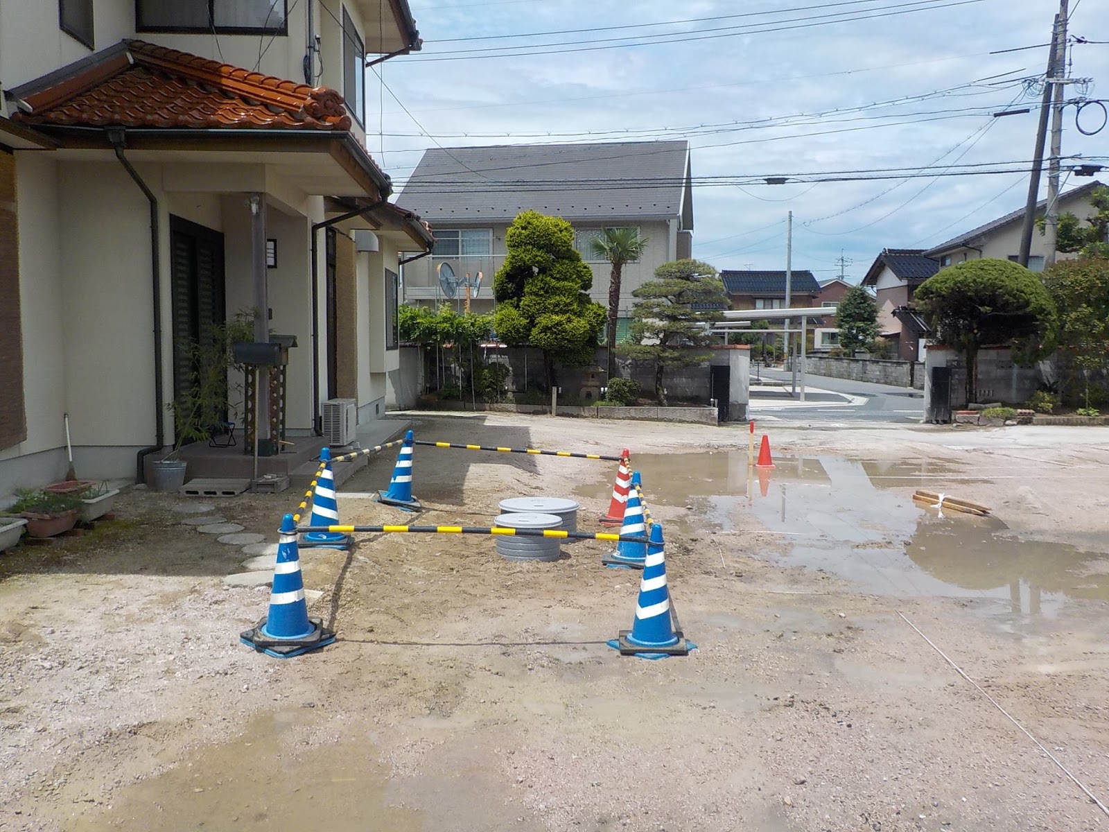 現在は地盤改良工事が完了し丁張りを組み、来週から基礎工事に入る予定です。