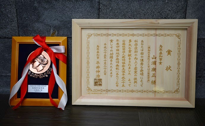 平成25年度中国地方発明表彰 受賞いたしました 投稿日 2013年11月6日 daikyogumi@gmail.com 大協組の製造特許【焼却灰を主原料とした資材の製造方法】が 平成25年度中国地方発明表彰 『鳥取県知事賞』 を受賞いたしました。 鳥取県産木材(杉)の賞状です。 とても素敵ですね