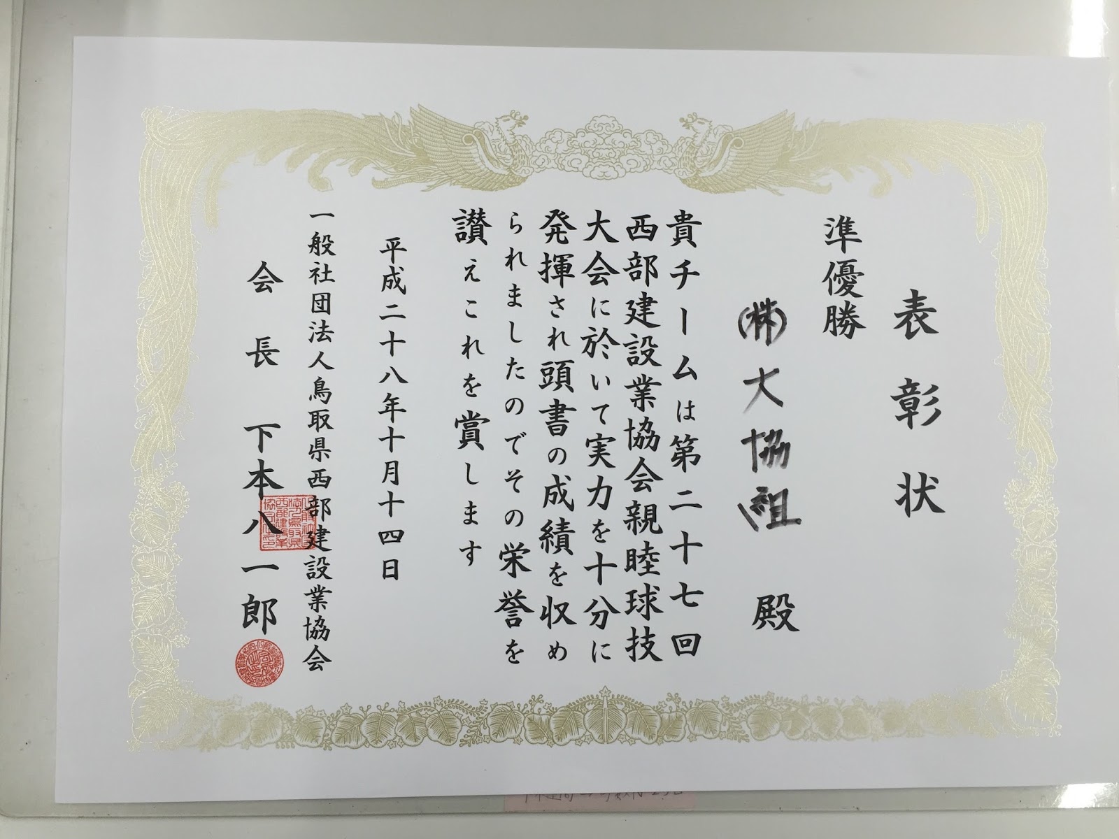 先日行われた建設業協会親睦球技大会でチーム大協組が見事準優勝を果たしました。