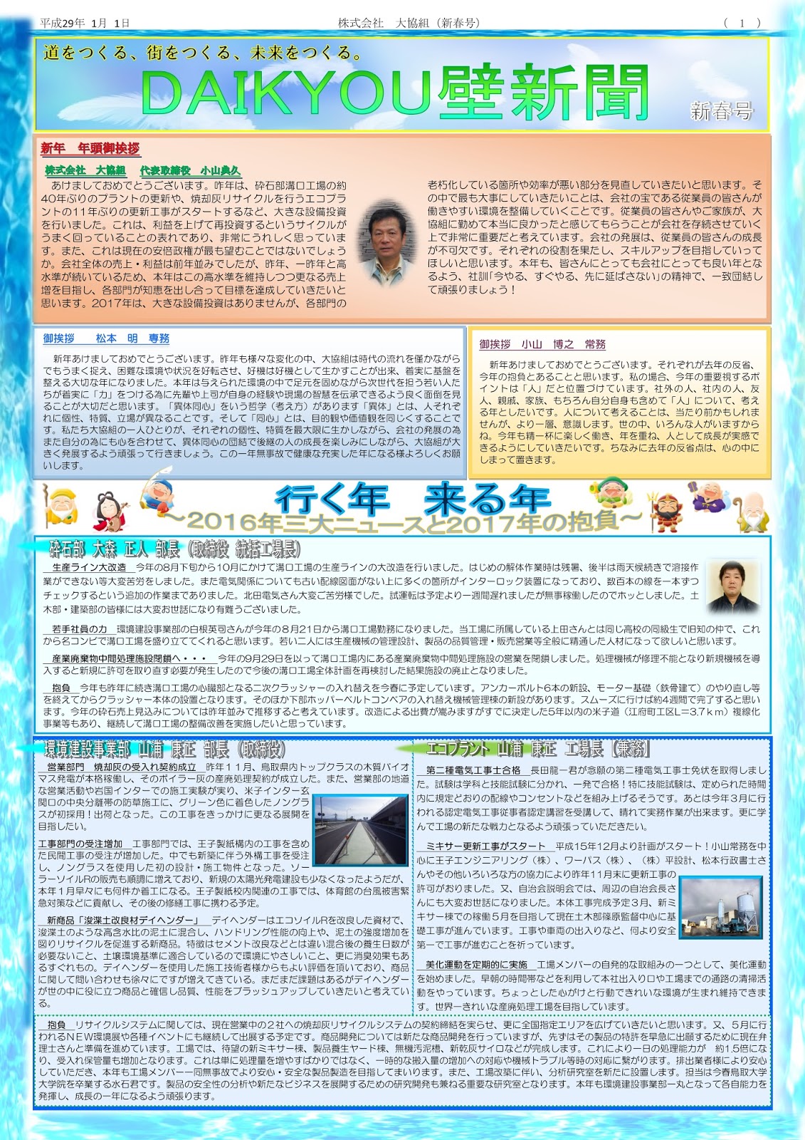 2017年新春号の社内報『DAIKYOU壁新聞』が完成しました。